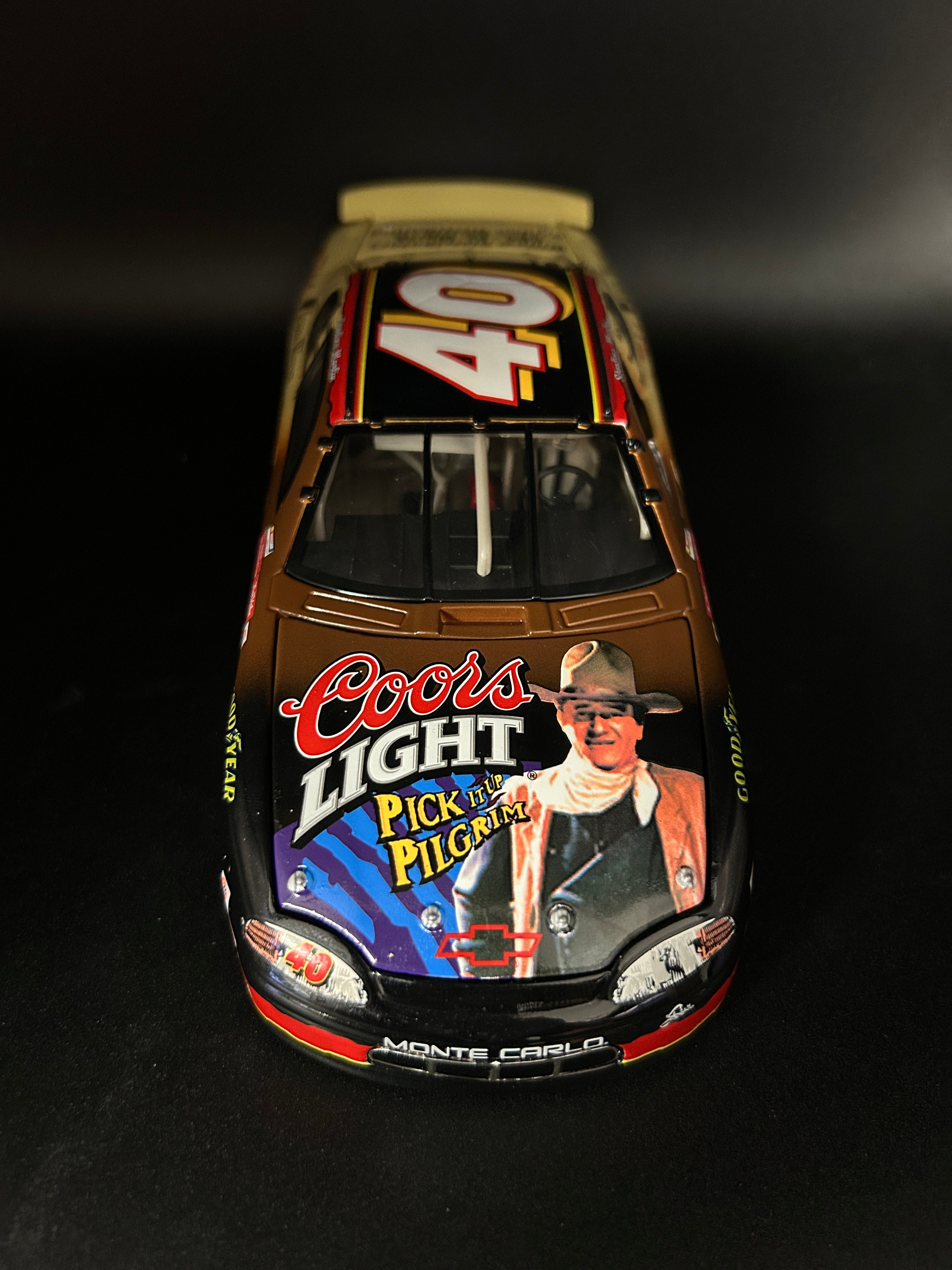 In 1999, Sterling Marlin drove the #40 Coors Light Chevrolet Monte Carlo, featuring a special paint scheme honoring legendary actor John Wayne. This tribute car was part of a promotion with the John Wayne Cancer Institute.